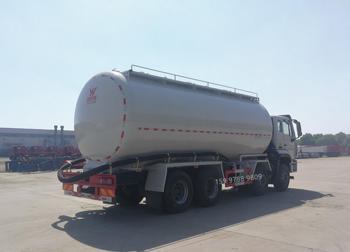 重汽前四后八干混砂漿車已完工,準備發車!重汽干混砂漿車配置:選用重汽豪瀚前四后八輕量化底盤,白色平頂駕駛室,MC07.34-50國五340馬力發動機,重汽10檔變速箱,HF7前橋,457后橋,12R22.5真空胎,駕駛室電動舉升,電動玻璃、電動空調,中控門鎖,罐體采用輕鋼制作,公告容積30方,封頭5mm,筒體4mm,兩倉三進料口設計,福達10方空壓機,砂漿車專用蝶閥、安全閥,標配8米砂漿專用卸料管。