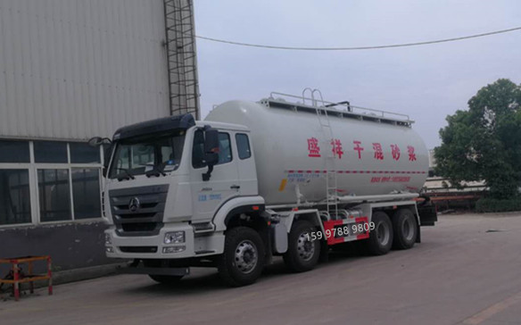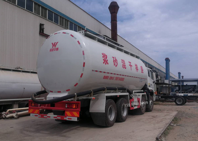湖南客戶訂購重汽前四后八25方砂漿車已完工,準備發車