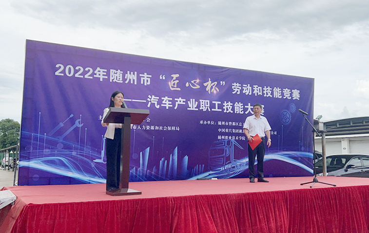 7月26日上午,由市總工會、市人社局主辦,曾都區總工會、隨州職業技術學院、重汽華威公司承辦的2022 年隨州市“匠心杯”勞動和技能競賽—汽車產業職工技能大賽在重汽華威公司成功舉行。市委常委、統戰部長、市總工會主席舒敏,市人社局黨組書記、局長黃蘋,區委副書記、區總工會主席朱睿,市總工會黨組成員、經審委主任范丹丹,重汽華威公司黨委書記、總經理陳勇,隨州職業技術學院工會主席張鳳成出席開幕儀式,市總工會黨組書記、常務副主席王強主持會議。