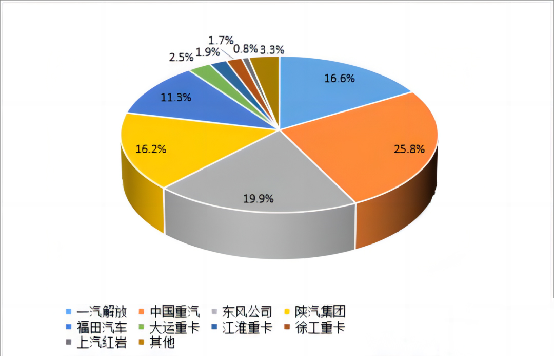 在重卡第一梯隊(duì)中,一汽解放2023年3月銷售重卡約1.6萬輛;2023年1-3月,解放重卡累計(jì)銷量約為3.71萬輛,市場占有率約16.6%。