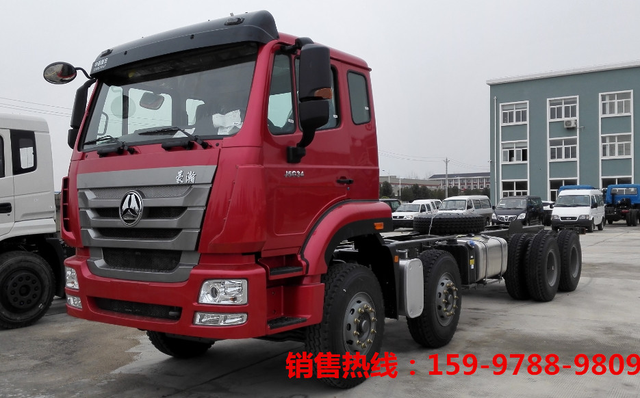 重汽ZZ3315N3863E1底盤,豪瀚平頂紅色駕駛室,重汽MC07.34-50國五發(fā)動(dòng)機(jī), 153前橋,16噸后橋,HW10檔變速箱,11.00R20鋼絲胎,原廠空調(diào),ABS。