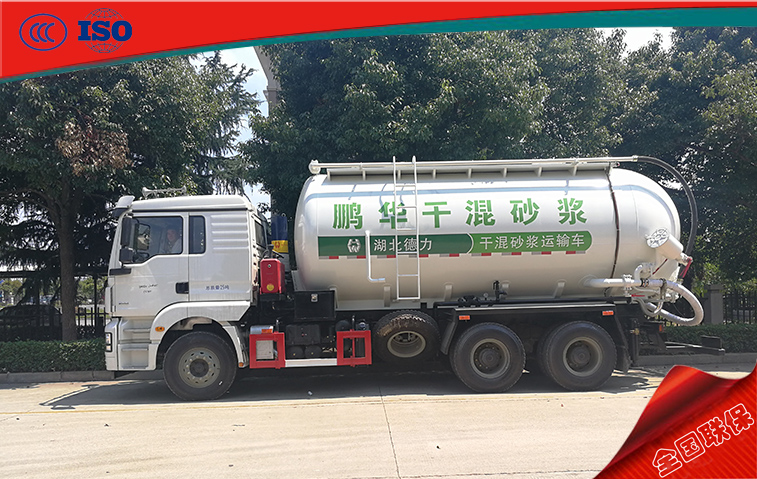 陜汽舉升式砂漿運輸車采用陜汽SX1250MB4底盤,濰柴300馬力國五發動機,陜齒JS135S 9檔變速箱,13T雙減后橋,11.00R20鋼絲胎,罐體采5mm Q235鋼板制作,封頭6mm,兩進料口單倉設計,前置國產160舉升油缸,后安裝兩根輔助液壓支腿,隨車配備取樣器,卸料過程中可隨時取樣,罐體前端加裝有輔助進氣管,尾部采用錐形封頭,專利防離析設計,卸料過程中形成螺旋風二次攪拌,卸料速度快無殘留。