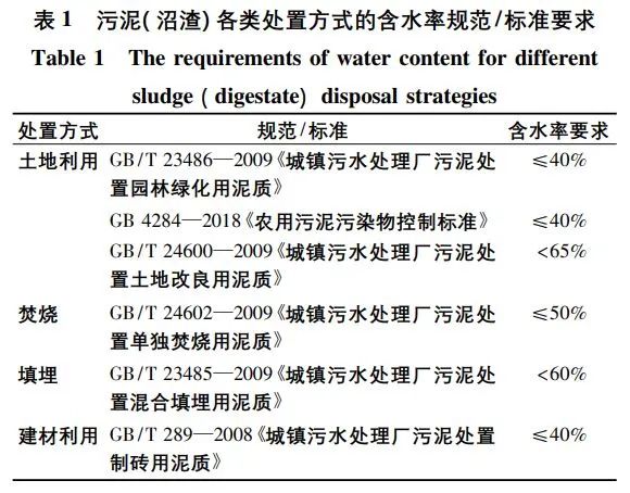 德國污泥沼渣出路中,64%采用干化后焚燒,24%農(nóng)用,12%用作景觀園林覆土。歐洲其他國家如荷蘭、瑞士已實(shí)現(xiàn)污泥沼渣100%焚燒。污泥焚燒后的灰渣磷含量高[(93.1±3.2)g/kg],是污泥沼渣磷含量的3倍(圖2),有利于后續(xù)的磷資源回收。磷是不可再生的自然資源,因此,德國2017年通過了對(duì)《污水污泥條例》(The German Sewage Sludge Ordinance, Abfallklarschlammverordnung, AbfKlarV)的修訂,要求從污水污泥或其焚燒灰中回收磷,明確提出2029年后含磷量大于20g/kg總固體的污水污泥須采用磷回收工藝,要求從污水污泥總固體中回收50%以上的磷;而污泥沼渣平均磷含量高達(dá)35.7g/kg(圖2),適用于“污泥沼渣焚燒-磷回收”的技術(shù)路線。盡管我國污泥厭氧消化處理量逐年激增,近10年從2814t/d增至6944t/d,但目前普及率僅為3%,遠(yuǎn)低于領(lǐng)先國家50%的水平。據(jù)不完全統(tǒng)計(jì),我國污泥沼渣利用途徑中,29%為堆肥土地利用、27%為焚燒、20%為填埋、16%為建材利用、8%進(jìn)行其他處理。現(xiàn)階段,為滿足國家標(biāo)準(zhǔn)與規(guī)范(表1),大部分污水廠添加大量藥劑(如CaO,10%~15%,質(zhì)量分?jǐn)?shù))進(jìn)行“污泥調(diào)質(zhì)-板框壓濾”,以降低沼渣含水率到60%~65%后直接填埋。但大量藥劑的添加不僅增加了污泥量和運(yùn)行費(fèi)用,而且不利于資源化利用。若采用干化技術(shù),可將污泥沼渣含水率由80%降至40%,體積可減少3倍,而熱值可提高約2.5倍,將極大地降低運(yùn)輸成本,并為后續(xù)的焚燒或資源化處置提供基礎(chǔ)。干化+焚燒有望成為最有效的污泥(沼渣)處置技術(shù)工藝之一。