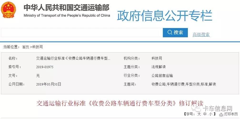 5月31日,交通部下發交通運輸行業標準《收費公路車輛通行費車型分類》修訂解讀。主要修訂內容與2003版標準相比,新標準主要在 車輛類別體系方面、客車分類參數方面、 調整1類客車分類界限值等方面做了修訂。其中,涉及的貨車部分修訂內容: