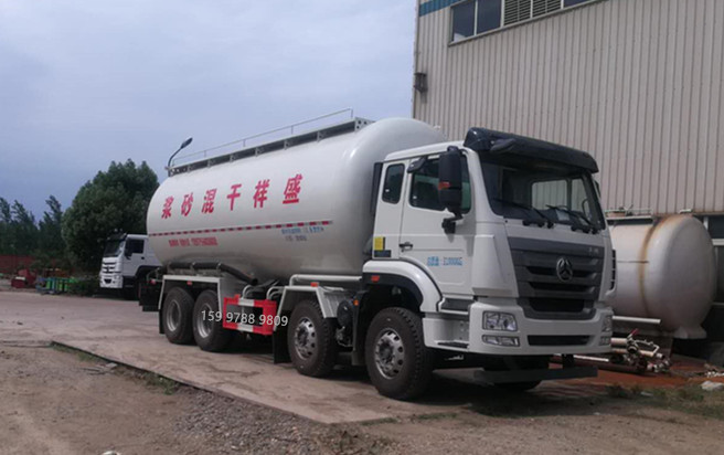湖南客戶訂購重汽前四后八25方砂漿車已完工,準備發車,重汽前四后八25方砂漿車配置:重汽8*4底盤,340馬力國五發動機,重汽10檔變速箱,153前橋,457后橋,11.00R20鋼絲胎,原廠空調,電動車窗,罐體輕剛制作,干混砂漿結構,有效容積25立方,兩倉,三進料口,卸料管路選用Q345耐磨無縫管,DN50砂漿專用安全閥,標配8米砂漿專用卸料管。