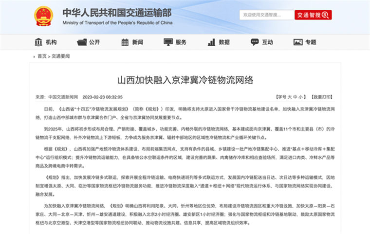 日前,《山西省“十四五”冷鏈物流發展規劃》印發,明確將支持太原進入國家骨干冷鏈物流基地建設名單,加快融入京津冀冷鏈物流網絡,打造山西中部城市群與京津冀合作門戶、全省與京津冀協同發展重要節點。根據《規劃》,山西將加強產地預冷物流體系建設,布局前端集貨網點,支持有條件的縣城、鄉鎮建設一批產地冷鏈集配中心,推進“基點+移動冷庫+集配中心”運行組織模式;提升冷鏈物流運輸能力,在具備鐵公水空聯運條件的區域,建設完善的蔬果、肉禽儲存冷庫和相應查驗場所,滿足進口肉類、冷鮮水產品等商品及跨境電商中轉需求。