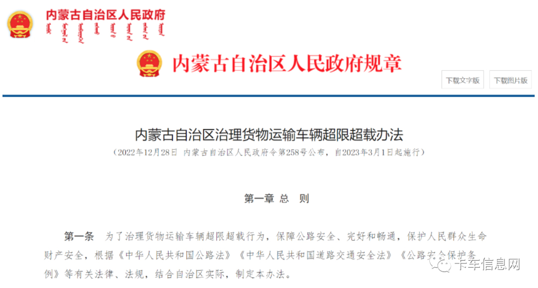 《內蒙古自治區治理貨物運輸車輛超限超載辦法》將于2023年3月1日起施行。該辦法的主要內容包括明確治超工作的責任主體、構建治超源頭管理機制、明確路面執法檢查方式、運用科技手段提高治超工作效率和強化信用治超監管。